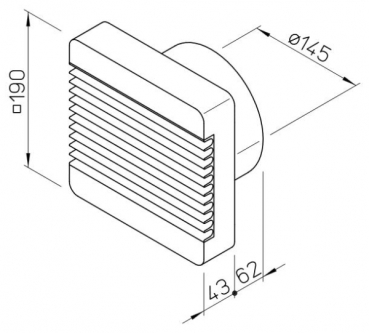 Unterputz-Raumventilator zum Einbau in Wände, Schächte und Fenster. Einsetzbar in Öffnungen mit NW 150 zur Be- und Entlüftung kleiner bis mittlerer Räume.Kunststoffgehäuse mit Lamellengitter zur Abdeckung der Ansaugöffnung.Hochleistungs-Axial-Laufrad, 8-Schaufeln aus Kunststoff.Einphasen-Wechselstrom-Kondensator-Motor, geschlossene Bauweise, wartungsfrei, mit in die Wicklung eingebauten Thermokontakten, drehzahlsteuerbar durch Spannungs- reduzierung, gedichtete, geräuscharme Kugellager mit Langzeitschmierung, nicht reversierbar.