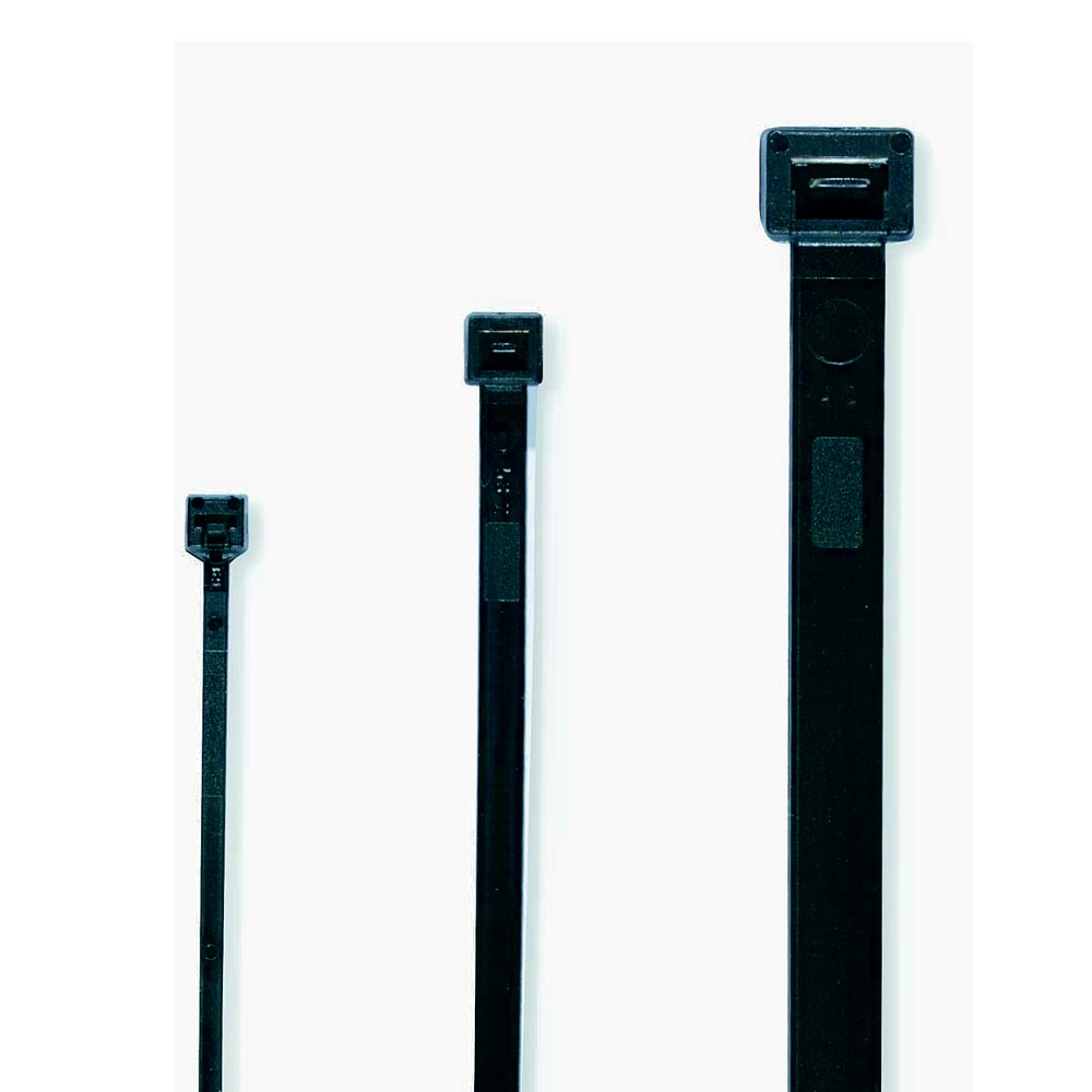 Kabelbinder, wetterfeste Ausführung, bedingt UV-beständig, reines Polyamid 6.6 (PA 6.6, Nylon) ohne Recyclingmaterialanteile, Rohstoffhersteller DuPont, Farben: natur oder schwarz (RAL 9011) durch Anreicherung mit Kohlenstoff (carbon black), andere Farben auf Anfrage, selbstverlöschend gemäß UL 94-V2, Schmelzpunkt bei +260°C, halogenfrei, silikonfrei, nicht toxisch, lebensmittelecht gemäß Empfehlungx (10) BGA des Bundesgesundheitsamtes, nicht leitend, hohe Abriebfestigkeit, geringer Reibungswiderstand, schlagfest, recyclebar, beständig u. a. gegen,Öle, Erdölprodukte (z. B. Benzin, Kerosin, Fette und Schmierstoffe), Kohlenwasserstoffe (z. B. niedere Alkohole, Aceton), Reinigungs- und Lösungsmittel, Alkalien, Schimmel, Salzwasser. Bedingt beständig u. a. gegen stark verdünnte Säuren, Produkte entsprechen ISO EN 50146, dem IEC-Standard IEC 92-101, Flammwidrigkeit UL 94-V2, Yellow Card- Zertifizierung durch Underwriters Laboratories Inc. Nr. E 160935 (M), selbstverlöschend gemäß UL 94, flame class 94V-2, selbstverlöschend gemäß ISO 1210, flame class FV-2, Zulassung durch RINA (Registro Italiano Navale), Zerifikat-Nr. 5/420/93, Zulassung durch Germanischer Lloyd, Zerifikat-Nr. 99173-96HH, Mindest-Abbindefestigkeit gemäß Standard MIL-S-23190 E, Kabelbinder, schwarz, Breite 7,5mm, Länge 360mm, Kabelbaumdurchmesser 5-101mm, Mindestzugfestigkeit 60kp/588N. 100 Stück.