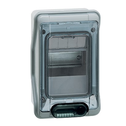 Legrand Plexo 601974 Feuchtraum Verteiler IP65 für 4TE. Gehäusefarbe ähnl. RAL 7047 telegrau, Türrahmen ähnl. RAL 7001 silbergrau, Temperaturbeständigkeit -20 bis +70 Grad Celsius, Türen transparent, beidseitig anschlagbar, mit Vorprägung für metrische Leitungseinführung, inkl. Membraneinführungen, herausnehmbarer Montagerahmen ab 2-reihigen Verteilern sowie N und PE Klemmen. Maße: HxBxT 200x128x115,6 mm