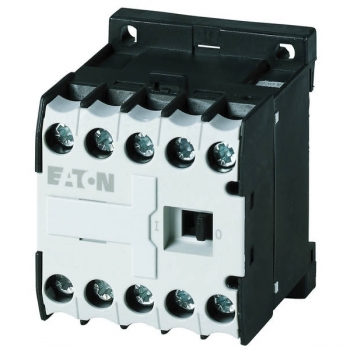 Leistungsschütz, 3-polig und 1 Schliesser, Applikation: Kleinschütz für Motoren und ohmsche Lasten, Leistungsschütze DILEEM, Gebrauchskategorie: AC-1: Nicht induktive oder schwach induktive Last, Widerstandsöfen, AC-3: Käfigläufermotoren: Anlassen, Ausschalten während des Laufes, AC-4: Käfigläufermotoren: Anlassen, Gegenstrombremsen, Reversieren, Tippen, Anschlusstechnik: Schraubklemmen, Hinweis: Geeignet auch für Motoren der Effizienzklasse IE3., IE3-fähige Geräte sind mit dem Logo auf der Verpackung gekennzeichnet., Beschreibung: mit Hilfsschalter, Pole: 3-polig, Bemessungsbetriebsstrom AC-3 380 V 400 V: Ie= 6.6 A, Bemessungsbetriebsstrom AC-1 konventioneller thermischer Strom, 3-polig, 50 - 60 Hz offen bei 40 °C: Ith = Ie= 22 A, gekapselt: Ith= 16 A, offen: Ith= 50 A, gekapselt: Ith= 40 A, max. Bemessungsbetriebsleistung Drehstrommotoren 50 - 60 Hz AC-3 220 V 230 V: P= 1.5 kW, 380 V 400 V: P= 3 kW, 660 V 690 V: P= 3 kW, max. Bemessungsbetriebsleistung Drehstrommotoren 50 - 60 Hz AC-4 220 V 230 V: P= 1.1 kW, 380 V 400 V: P= 2.2 kW, 660 V 690 V: P= 2.2 kW, verwendbar für: ?DILEM, ?DILE, Kontaktbestückung S = Schließer: 1 S, Stromart AC: Wechselstrombetätigung AC-24V/50Hz